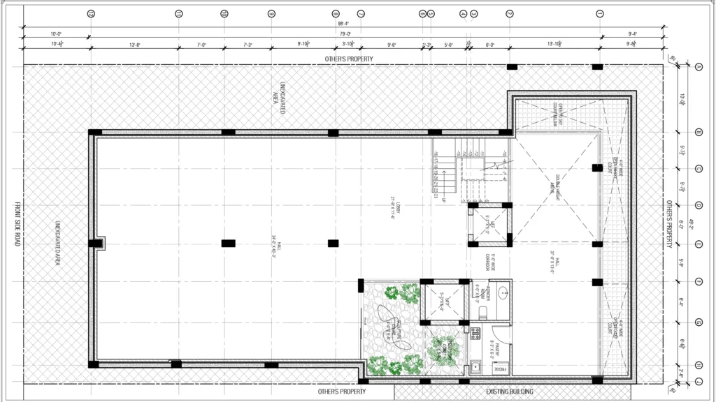 Below the surface lies the most versatile space in the building. A sprawling, column-free hall that sets the stage for anything-from intimate family gatherings to large celebrations. Tucked alongside it, a private green sit-out brings in nature where you’d least expect it, softening the scale with life and light.